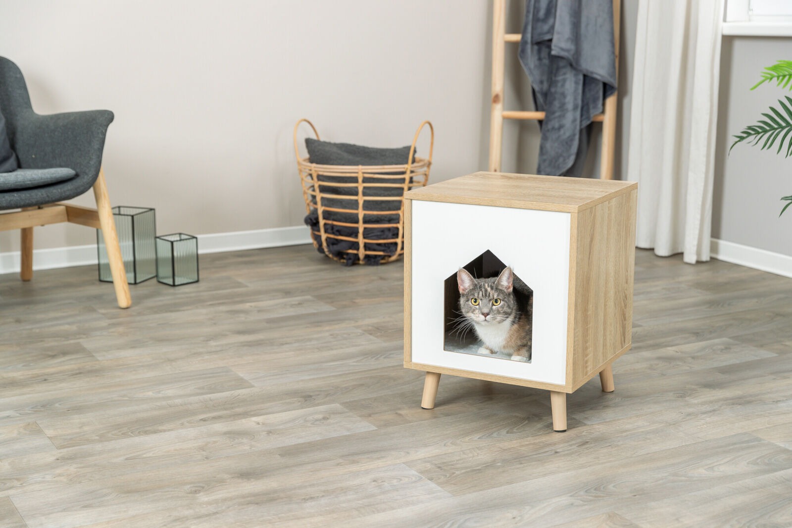 Een leuke mand voor je kat of kleine hondje in de vorm van een huisje.