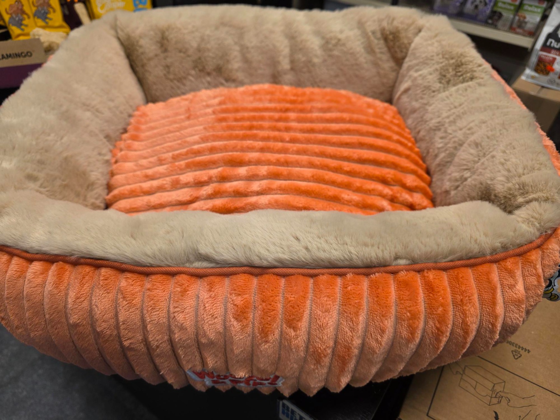 De binnenzijde is gevoerd met een zachte pluche voering die zorgt voor warmte en geborgenheid. De stevige opstaande randen bieden extra ondersteuning, waardoor jouw kat of kleine hond zich veilig en comfortabel kan opkrullen.