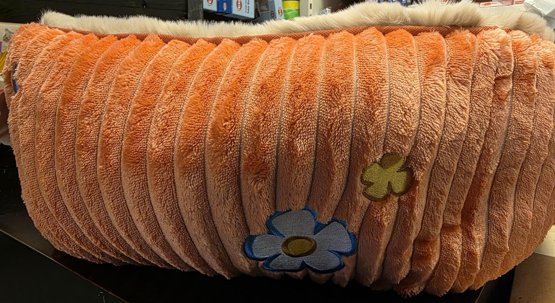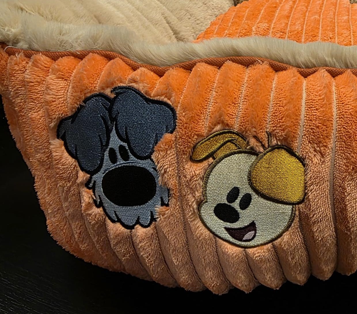 De herkenbare Woezel & Pip details en geborduurde figuurtjes aan de zijkant maken deze divans een perfect onderdeel van de officiële Woezel & Pip huisdierenlijn.