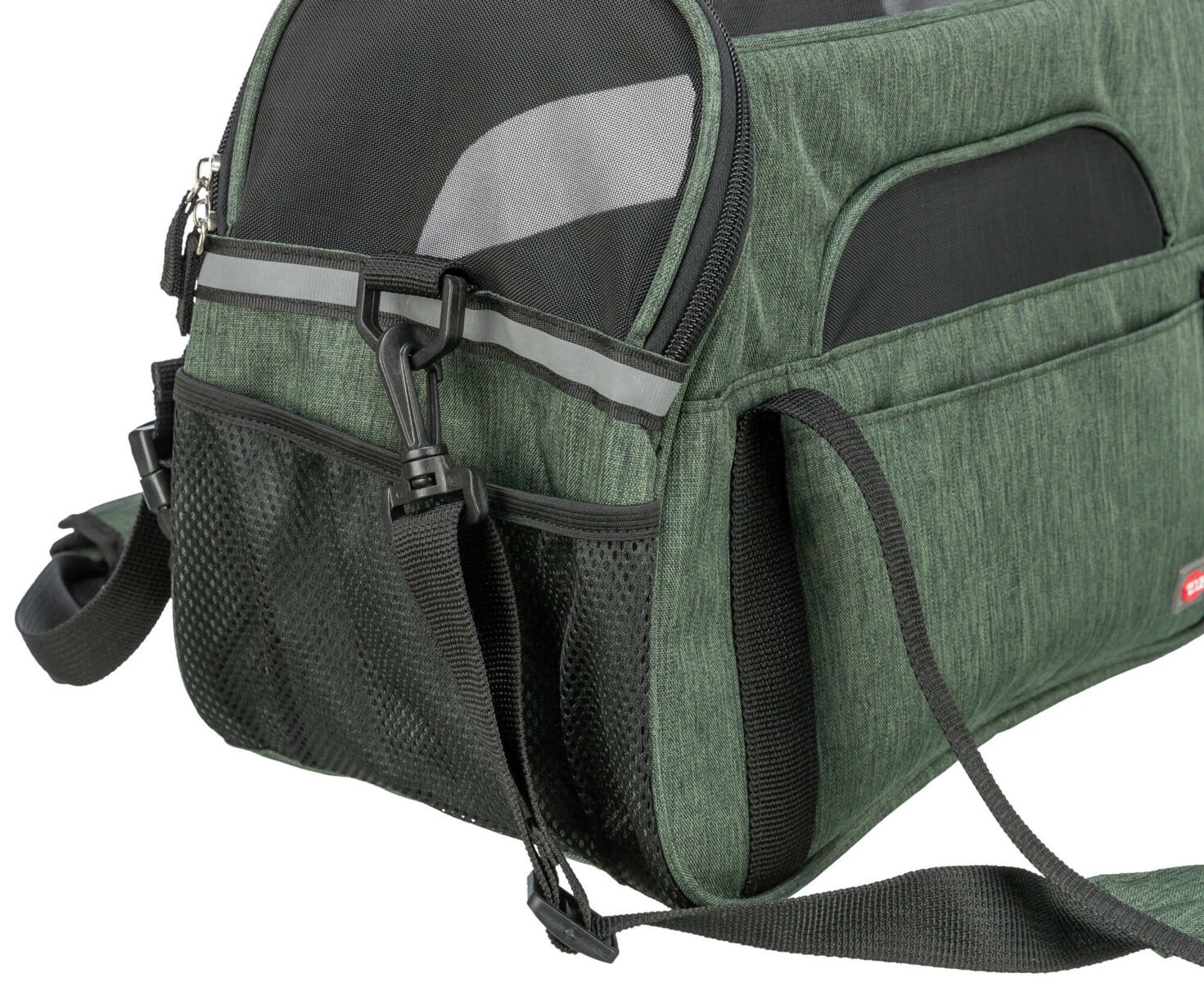 Voor de veiligheid zit er in de tas een geïntegreerde korthouder, welke aan de halsband of het tuig van de hond bevestigd kan worden. De ritssluitingen zijn met gespen afsluitbaar. Omdat de tas geheel afsluitbaar is, is deze ook geschikt voor katten.