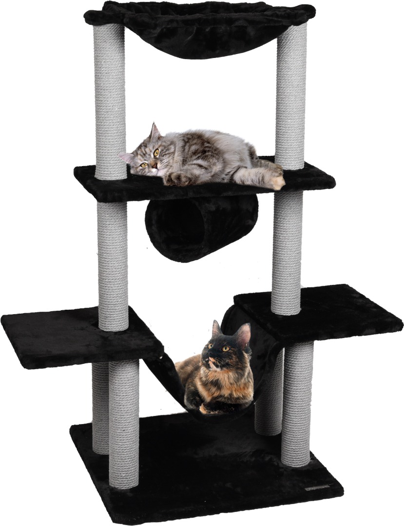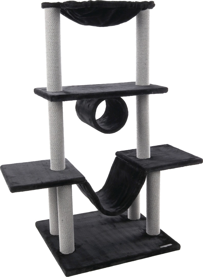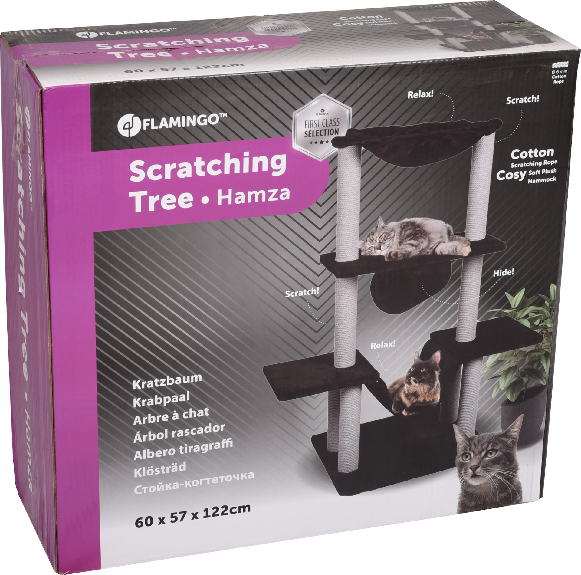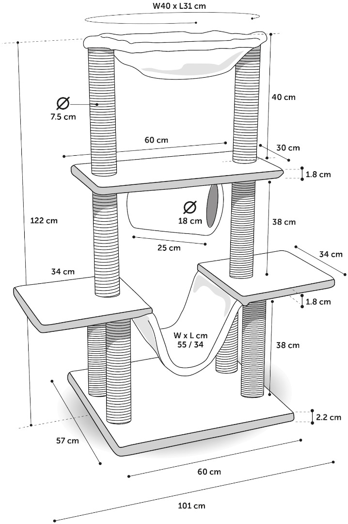 Geef jouw kat de ultieme speelervaring met krabpaal Hamza! Gemaakt van MFD met een zachte teddy stof en katoenen krabtouw. Met 2 hangmatten en een speeltunnel kan jouw kat klimmen, spelen en nagels verzorgen. Voorkom krassen op meubels en kies voor kwaliteit!